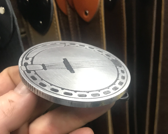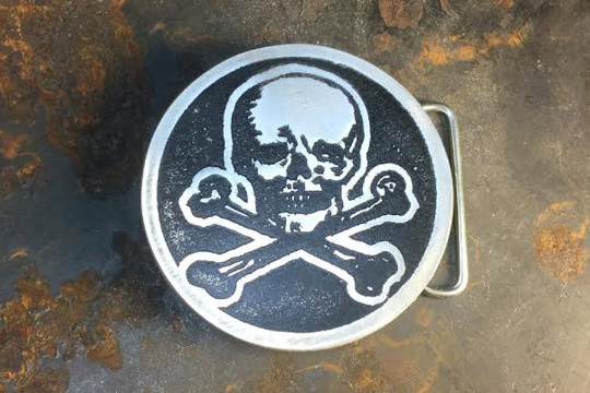 Buckle Dimensions:- 3" Round - Cut from 0.188" thick aluminum plate- Allows up to a 1.675" wide beltCreating an indelible mark on a piece of metal is a true triumph...